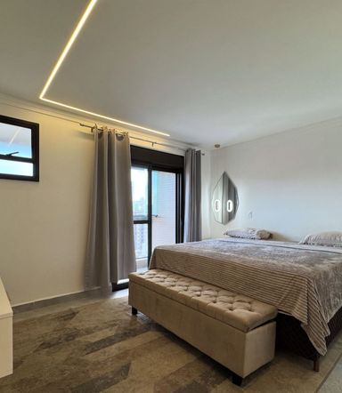 Apresentamos este exclusivo apartamento de 143m² de área útil, localizado em um dos endereços mais desejados da Praia Grande – o Canto do Forte. Com projeto arquitetônico diferenciado, o imóvel foi originalmente planejado com 3 dormitórios, mas passou por uma transformação para oferecer ainda mais conforto e sofisticação: